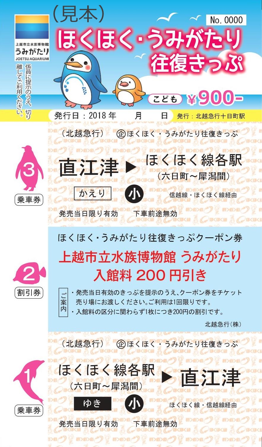 上越市立水族博物館「うみがたり」のオープンに合わせて特別企画乗車券を発売します。