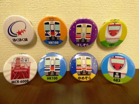 以前に販売していた「缶バッジ」がパワーアップしました。その名も「スタンドピン式缶バッジ」(全8種)!人気のあった車両イラストに新たな3デザインを加えての登場です。