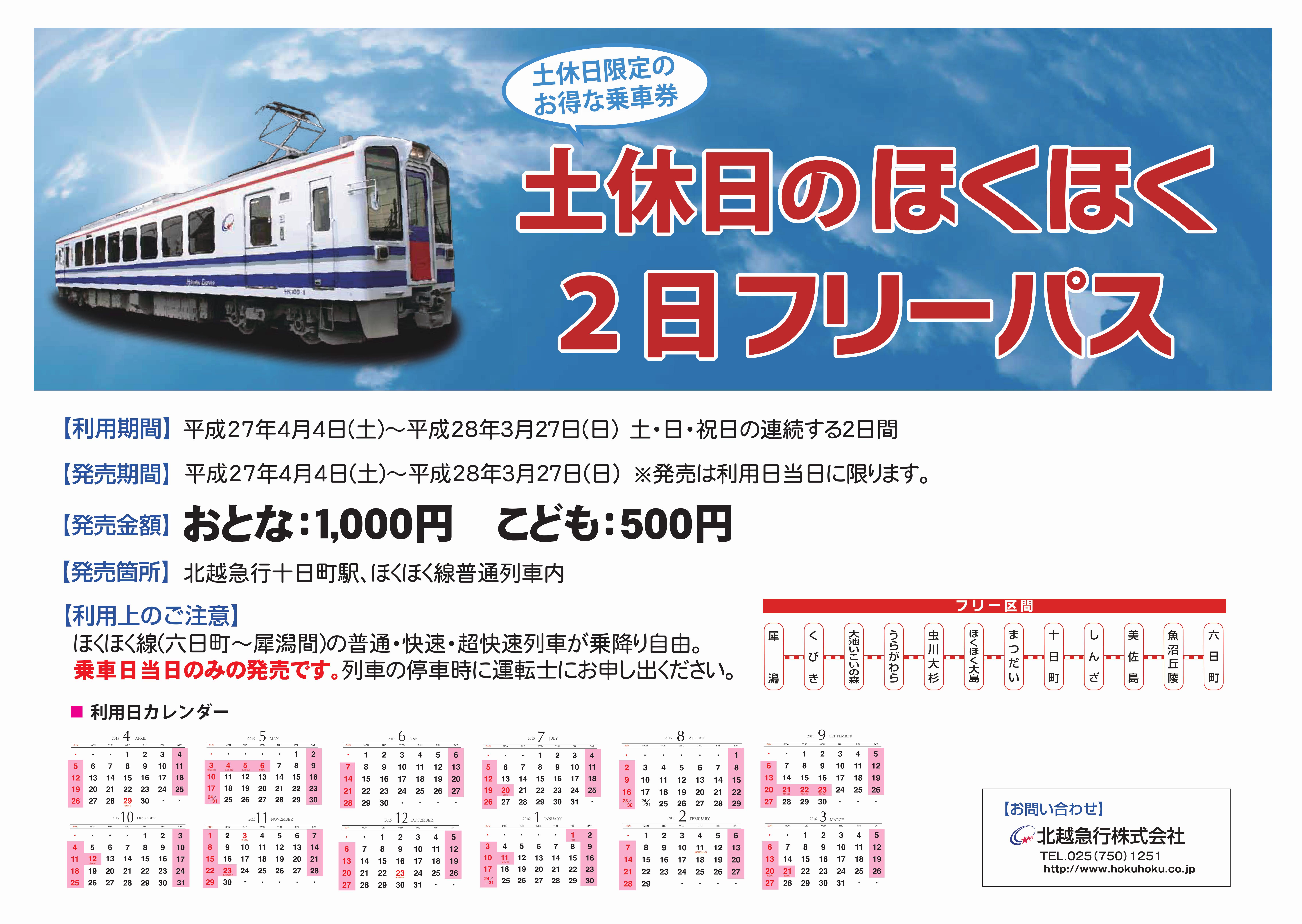 明日4月4日より「土休日のほくほく2日フリーパス」が発売になります。