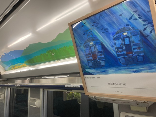 「大人げない塗り絵」と「たのしいぬりえ」の入賞作品を列車に飾りました