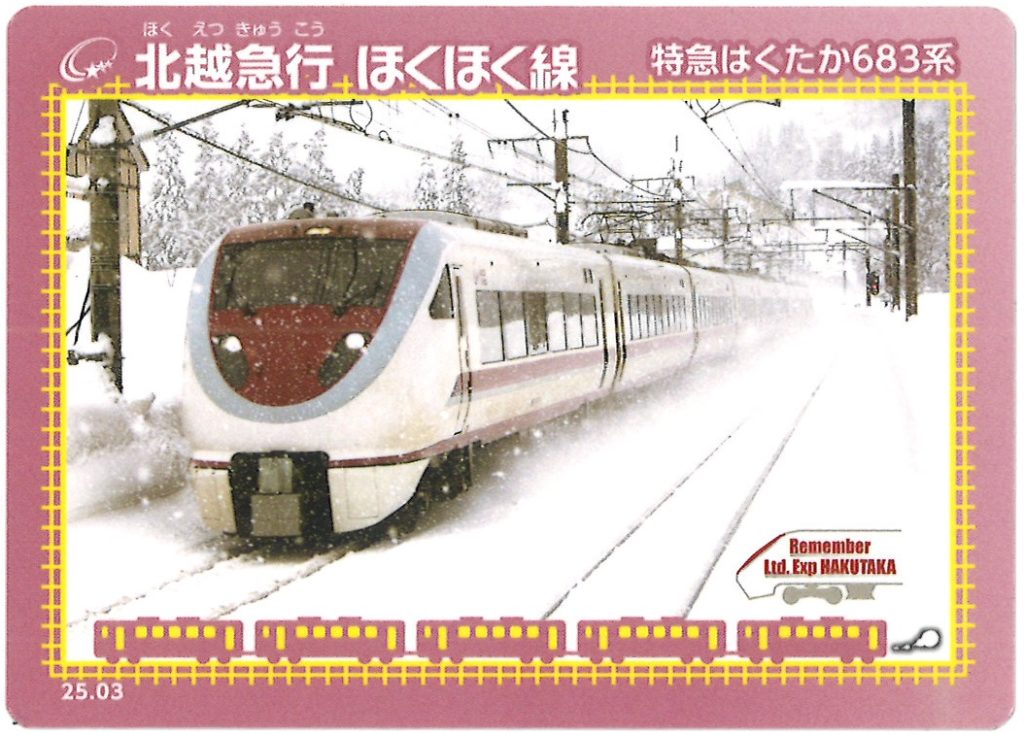 今回の鉄カードは、今まで作っていなかった特急はくたかデザインです